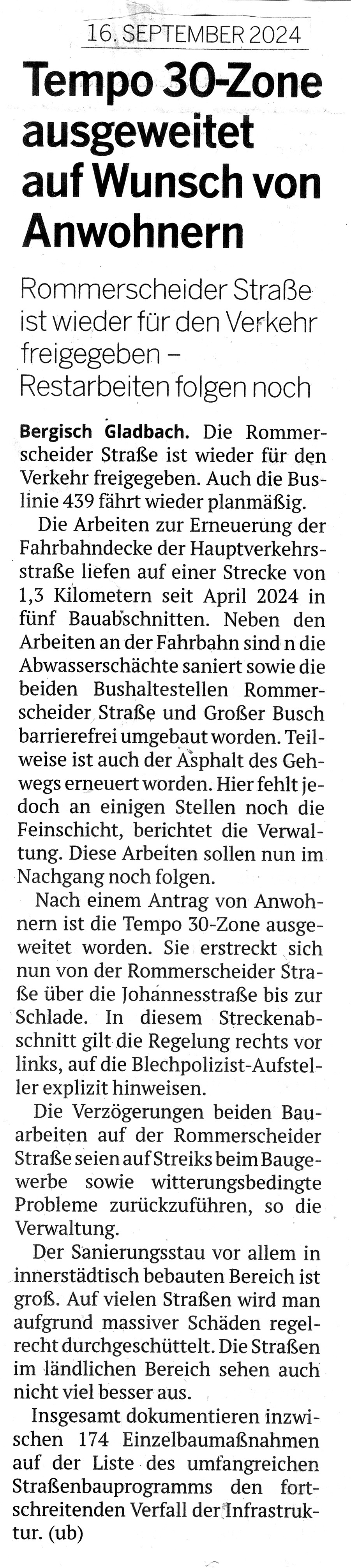 Die Sanierung der Rommerscheider Straße ist bis auf Restarbeiten abgeschlossen und jetzt Tempo 30-Zone. Lesen Sie hier, was darüber am 16.09.2024 in der heimischen Presse stand. Am 24. und 25. August fand das Rommerscheider Dorffest 2024 statt. Lesen Sie hier was darüber in der Presse stand. Anfang September 2023 verstarb der Ehrenvorsitzende des Bürgervereins Rommerscheid. Er war über 40 Jahre Vorsitzender des Bürgerverens Rommerscheid. Lesen Sie hier eine Würigung aus der heimischen Presse. Am 22. April 2023 fand in der Kirche St. Engelbert in Rommerscheid die Verleihung der St. Engelbert- Plakette an den Männergesangverein Rommerscheid e.V. statt. Lesen Sie hier was darüber in der Presse stand. Am 10. Dezember 2022 machten sich abends Nikolaus und Knecht Rupprecht auf den Weg durch Rommerscheid um den Kindern Tüten mit Leckereien an die Haustür zu stellen. Lesen Sie hier was darüber in der Presse stand. Am 05.November 2022 fand in der Kirche St.Engelbert in Rommerscheid ein sehr erfolgreiches Konzert der Band „Pütz und Band“ statt. Am 03. März 2022 fand in Rommerscheid eine Sammelaktion für die vom Krieg betroffenen Menschen in der Ukraine statt. Trotz sehr kurzfristiger Planung war die Resonanz überwältigend. Lesen Sie hier was darüber in der Presse stand. Die Kirche St. Engelbert in Rommerscheid wurde zum Denkmal. Lesen sie hier was dazu in der Tagespresse stand. Der Bürgerverein Rommerscheid e.V. feiert in diesem Jahr sein 100jähriges Bestehen. Lesen Sie dazu den Bericht in der Tagespresse vom 26.10.2019 und über die 100-Jahr-Feier in der Kirche St. Engelbert in Rommerscheid am 28.10.2019. Der Rheinische Verein für Denkmalpflege und Landschaftsschutz hat die Kirche St. Engelbert in Rommerscheid zum Denkmal des Monats gekürt. Lesen Sie hier den Pressebericht vom 30. Oktober 2019. Am 11. August 2019 wurde der Max-Bruch-Weg eröffnet. Lesen Sie hier was darüber in der Presse stand mit einem Foto der Eröffnung. Presseartikel vom 02. August 2019 über die Eröffnung des offenen Bücherschranks in Rommerscheid. Neues Leben für alte Kirche. Presseartikel vom 05. April 2018 über die Suche nach einem neuen Konzept für St. Engelbert. Wie alt ist der Rommerscheider Hof? Presseartikel vom 15.Februar 2018 in dem der Kölner Kardinal Rainer Maria Woelki keine Alternative zur Aufgabe von Kirchengebäuden sieht. Workshop in Rommerscheid zum Bau von Insektenhotels (September 2017). Die Rommerscheiderin Alessa Eickel stellt ihre Masterarbeit mit Vorschlägen zur Zukunft der St. Engelbert-Kirche vor (Juli 2017). „Auszug aus einem Interview“ mit Weihbischof Ansgar Puff und Kreisdechant Norbert Hörter zur Zukunft ihrer Kirche in Rhein Berg (April 2017) Vergabe der „St. Engelbert-Plakette an das CBT-Wohnhaus Margaretenhöhe“ (2017) Fotoausstellung „Blickpunkte“ von Jo Wittwer in der St.-Engelbert-Kirche in Rommerscheid (2017) Denkmalpflege in Bergisch Gladbach (2016) Sanierung des Rommerscheider Hofs (2016) Presseartikel über Rommerscheid (2016) Nachbarschaften – Ganz sicher auf dem Berg (2008) Frühjahrsputz in Rommerscheid (2006) |
